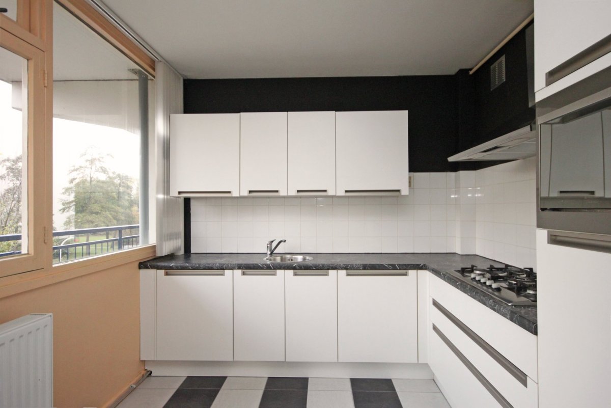 Op de 2e etage gelegen royaal 4 kamer appartement voorzien van een moderne hoekkeuken met inbouwapparatuur, nette laminaatvloeren en een woningbreed balkon.