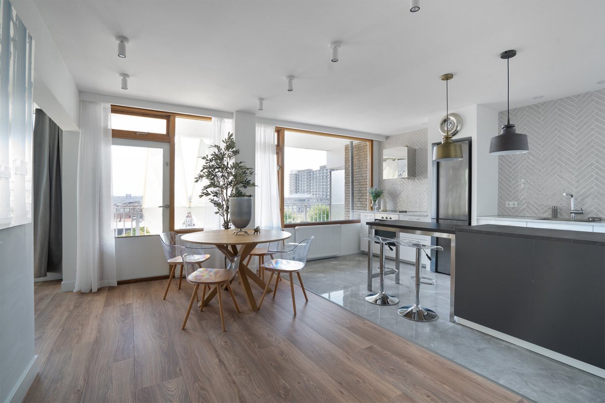 Appartementen zoals dit vindt u niet vaak. Met een geheel eigen visie en smaak is dit appartement in het afgelopen jaar getransformeerd tot een soort loft waar u zich bij thuiskomst bijna in een hotel waant. De ligging van de woning op de 8e etage, het fijne uitzicht en de nabijheid van het centrum van Den Haag maken het plaatje compleet. Op loopafstand vindt u de gezellige winkelstraten, restaurantjes en andere zaken die de binnenstad haar karakter geven. Daarnaast zijn door de centrale ligging de openbaar vervoer verbindingen uitstekend.