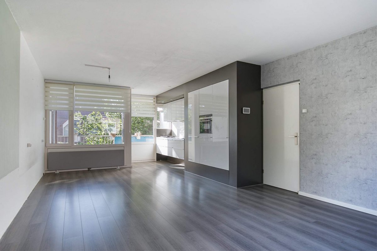 - Lichte doorzonwoonkamer (ca. 8,79/7,81 x 4,27 m) met open keuken en toegang tot het ruime balkon (westen);