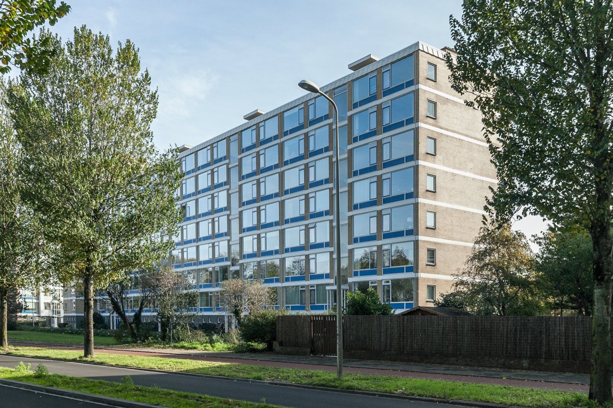 Op de vijfde etage op hoek gelegen ruim bemeten vier kamer appartement met twee slaapkamers. In het complex "Parkzicht II" met zonnig balkon op het Zuid Oosten aan de achterzijde, eigen berging in de onderbouw en parkeren op parkeerterrein van de Vereniging.