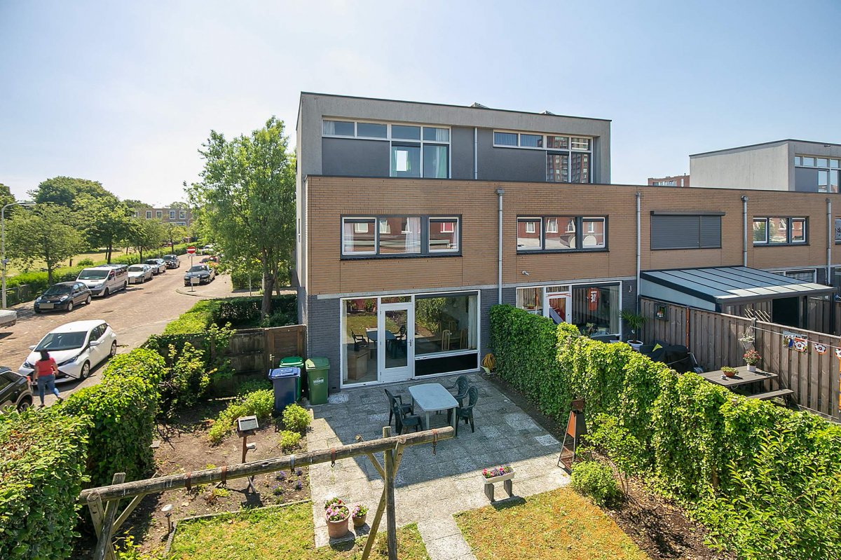 In een gezellige en kindvriendelijke woonwijk gelegen ruime 3-laags hoekeengezinswoning met 4 ruime slaapkamers, zonnige zeer ruim bemeten achtertuin, achterom en houten schuur. Gelegen op loopafstand van het winkelcentrum Leyweg en nabij scholen, Nutsschool Morgenstond en nabij diverse openbaar vervoer verbindingen, zoals tram 4, bus 21, 23 en 25.