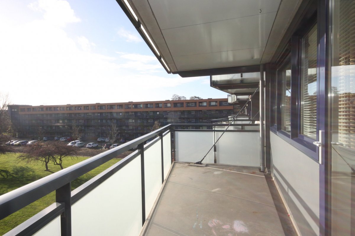 • Lichte woonkamer van circa 25 m² met toegang tot het balkon met fraai uitzicht op de omgeving en groene binnentuin.
