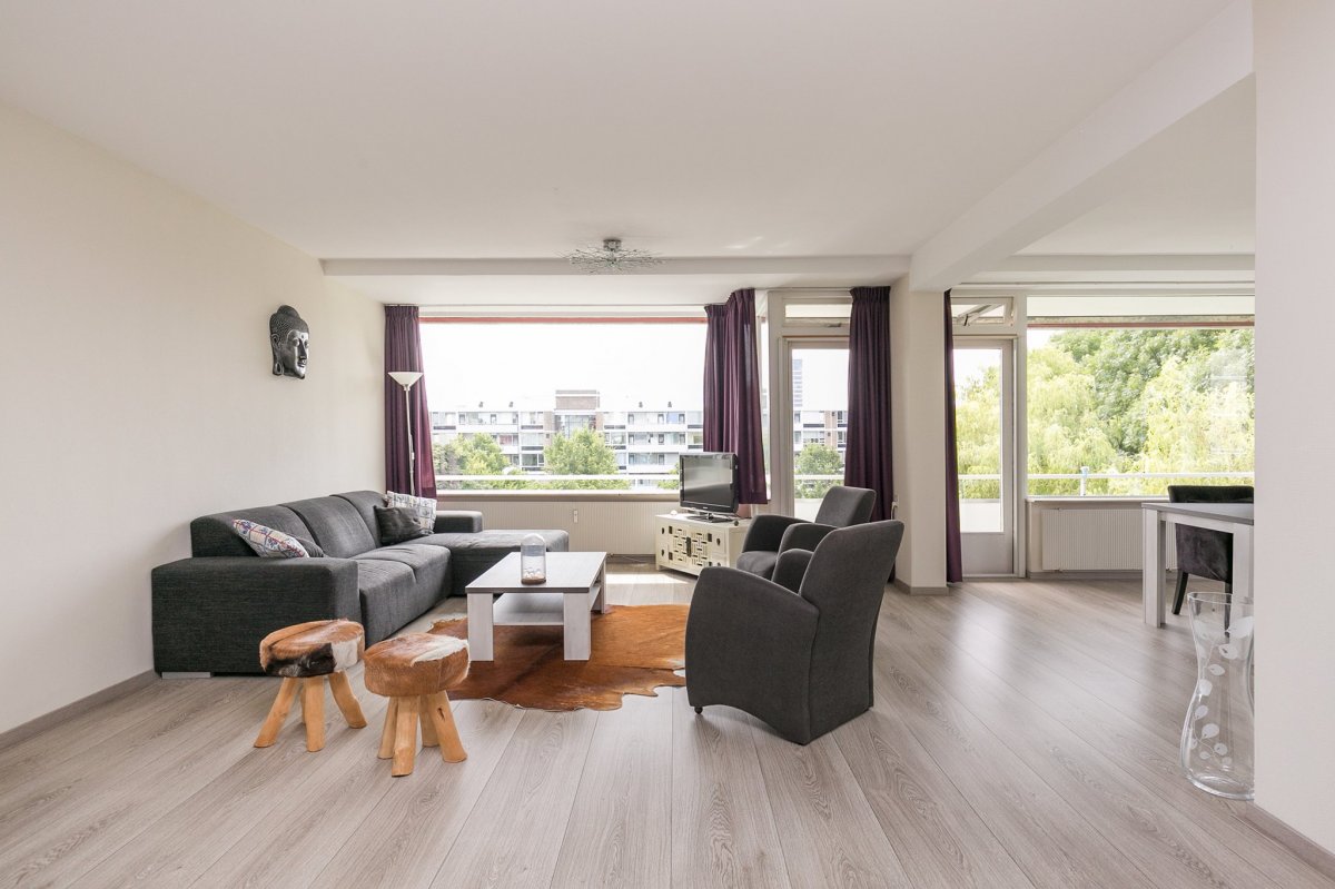 - Zeer royale en heerlijk lichte woonkamer voorzien van laminaatvloer en grote raampartijen. Vanuit de woonkamer heeft u toegang tot het zonnige balkon;
