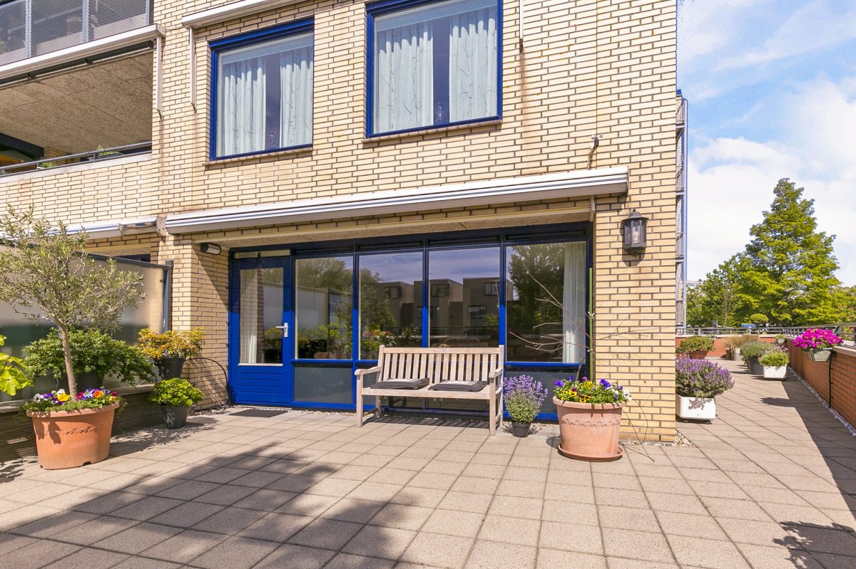 - Zeer royaal en zonnig terras aan de zij- en achterkant van het appartement waar u de gehele dag van het zonnetje of de schaduw kunt genieten. Het zijterras is gelegen op het zuidoosten en het achterterras op het zuidwesten. Beide zijn voorzien van sierbestrating, buitenverlichting, buitenkraan, zonwering aan beide zijden, een bewateringssysteem voor de planten en een buitenstopcontact;