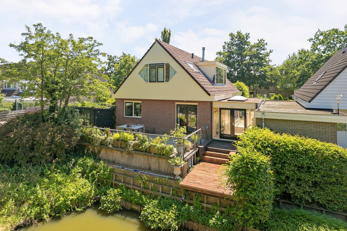 Deze fraaie vrijstaande woning op een perceel van 402 m² grenst aan de achterzijde aan het water met zicht op de Bovendijk. De beschutte tuin op het zuiden biedt een heerlijk terras met veel privacy en een mooi zonnescherm. Op de terrassen aan het water is het heerlijk genieten van de avondzon. Daarnaast is het mogelijk om met twee auto’s op eigen terrein te parkeren.